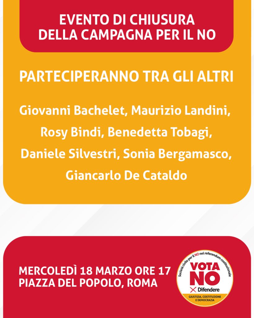 Ci vediamo il 18 marzo, alle ore 17:00, in Piazza del Popolo a Roma, per la chiusura della campagna per il NO al referendum sulla giustizia.