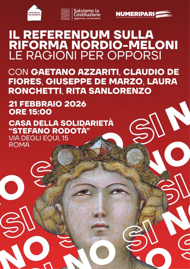 Il referendum sulla riforma Nordio-Meloni: perché opporsi [Roma, 21 febbraio 2026)